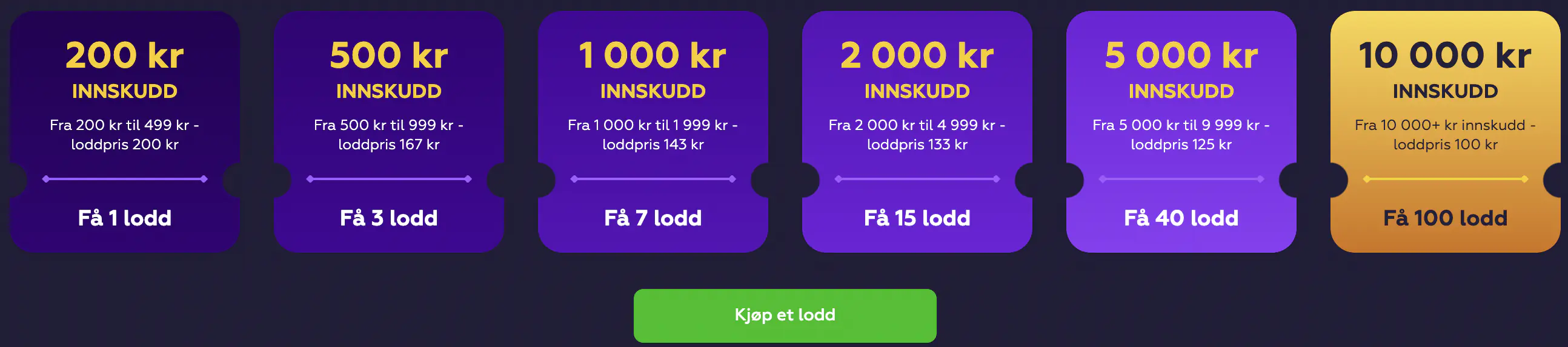 - Minimumsinnskudd – ofte 200 kr for å aktivere bonuser.